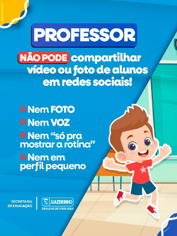 A partir de agora, a divulgação de imagens de menores de idade só pode ser realizada mediante autorização formal dos responsáveis legais. A medida reforça o compromisso com a segurança, a privacidade e o respeito, especialmente nas redes sociais e demais plataformas digitais.