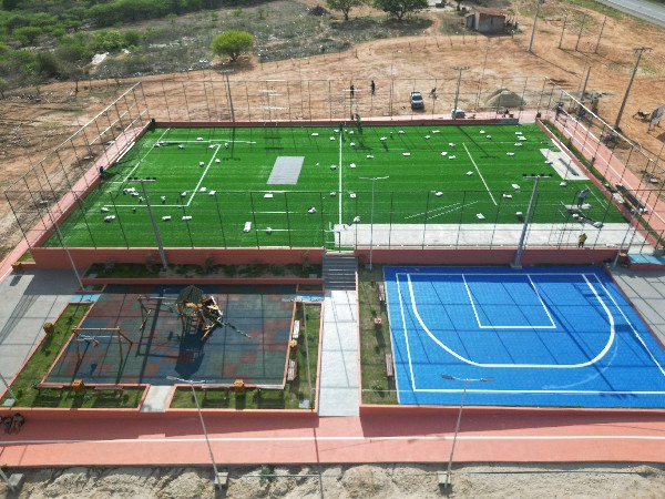 Dentro desse conjunto de ações, foi entregue o Novo Complexo Esportivo, viabilizado por meio de uma emenda no valor de R$ 1.400.000. O equipamento representa um importante avanço na infraestrutura esportiva do município, incentivando a prática de atividades físicas, o lazer e a convivência social.